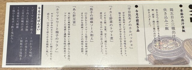 ご飯が炊けるまでに小鉢と飲み物が来ますが、終わるころには