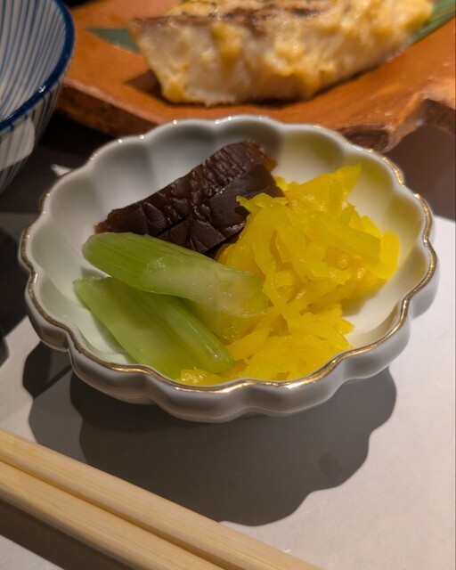 お漬物と赤出汁とともにほっこりと♫