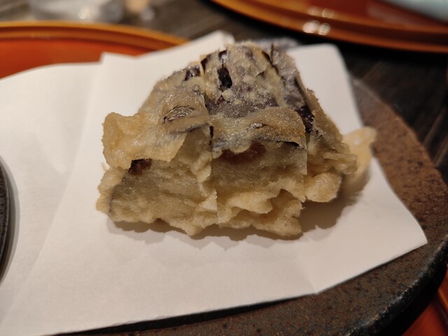 旬の天ぷらは(鱚、ベビーコーン、ナス、原木椎茸、鱧、山芋とろろ大葉、イカ、万願寺唐辛子、帆立)でした。