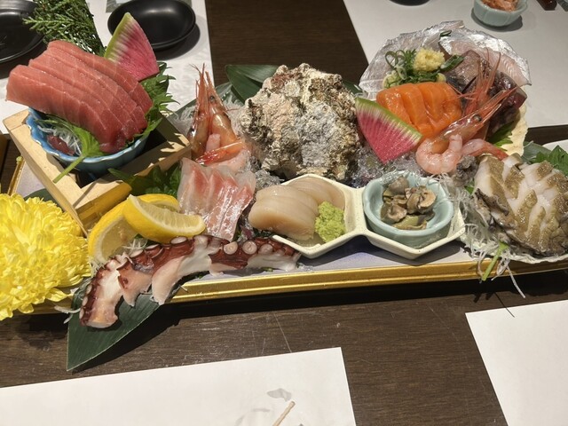 お魚が好きなので、お刺身がたくさんあってアワビとか刺身で食べられて幸せ。