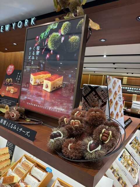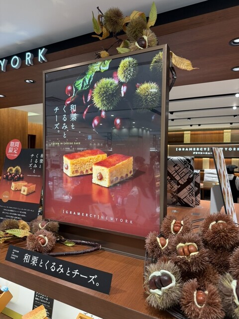 グラマシーニューヨークといえば、なんといってもチーズケーキ^_^この時期だけの期間限定マロンのチーズケーキとスタンダードのチーズケーキを二箱