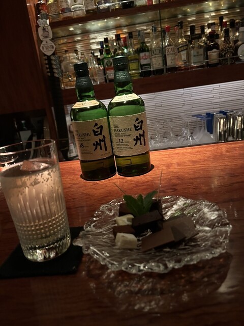 僕は白州の12年、18年を楽しみ、連れは店員さんにおすすめのカクテルを訪ね、苺ベース、キウイベースのカクテルを楽しんでいました!