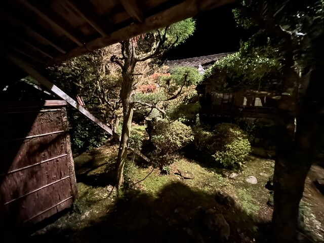 部屋から見えるでら綺麗な庭、歴史を感じる建物、
