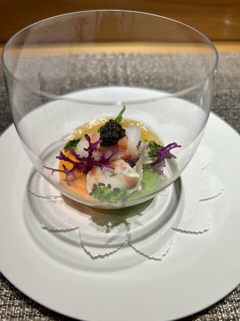 なんとも美しく精緻な美食の世界!村上シェフの思いがこもった愛媛の山海の恵みを,フレンチに取り入れ融合させたイノベーティブ.フュージョンが素晴らしい!この頑なに一貫したコンセプトはまさに芸術的…美しく鮮やかに…シェフの溢れる感性や創造性が描きだす【しまなみ】の豊さ.そして美味さの深淵…まさに郷土愛が詰まった渾身かつ珠玉のガストロノミー…といえそうです!ホスピタリティも含め全てお見事でした…ご馳走様!