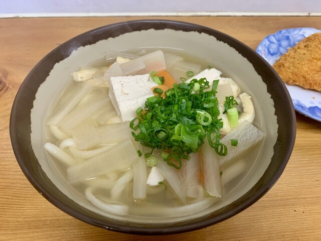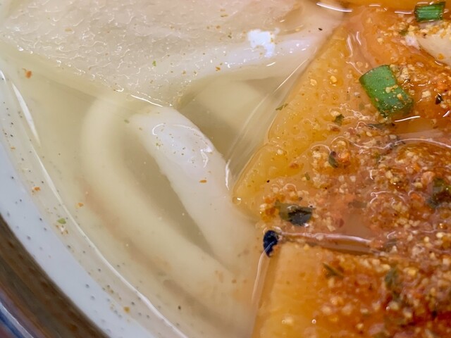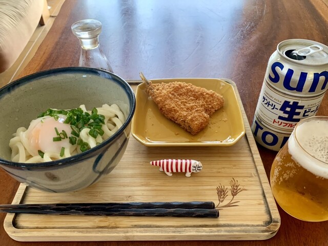 白身魚フライにしょうゆを垂らしてると、きましたしっぽく。つるっ、うまー。うどんのテクスチュアは毎日微妙に違います。今日のは僕が一番好きなあったか柔らかツルツルシコシコのどごし抜群麺です。うますぎるー。にんじんも大根も柔らかー。