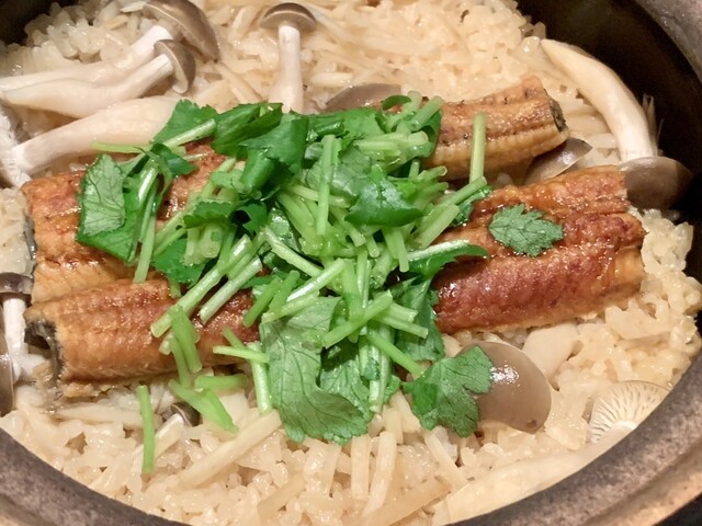 土鍋は、鰻と牛蒡。漬物の絶妙な塩加減もすごかった。