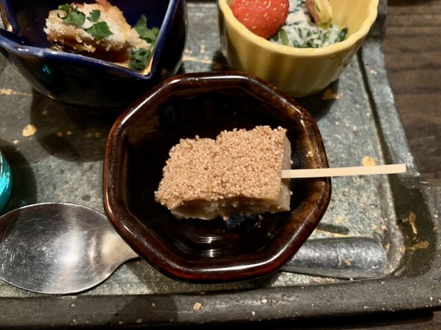 アボカドとアンチョビのサラダ、小鮎の天ぷら、う巻き(鮮やかな黄色)、酒盗クリームチーズあたりは白州ハイボールで上品に。ハイボールも絶妙なバランス、よそと違います。