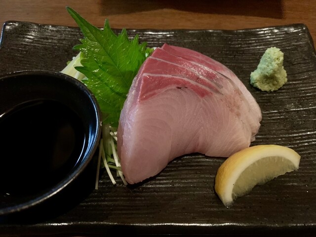 オリーブハマチ解禁、スペシャルのお刺身は、、、おおー、辛子明太子とクラゲポン酢の2択!!大好きです、辛子明太子。