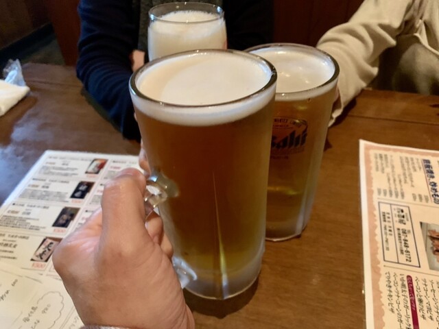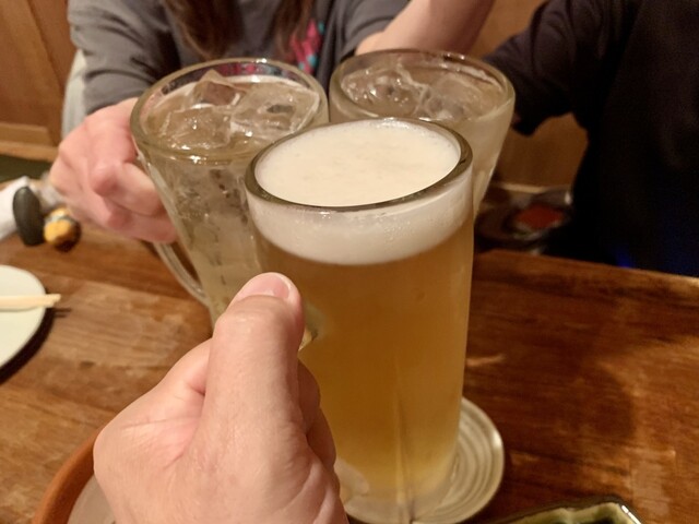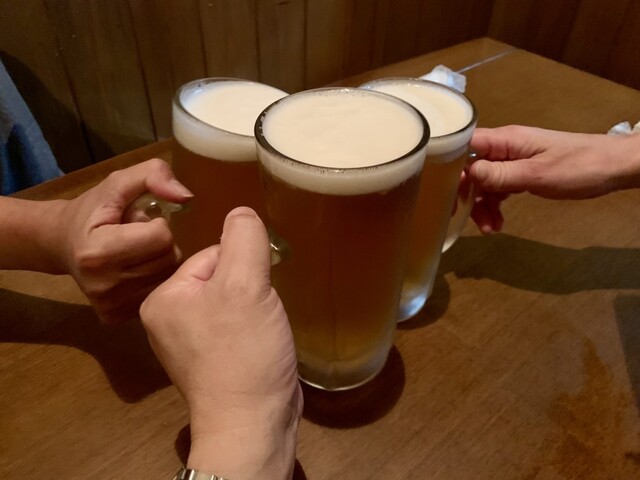 生大x2とノンアルスタート。スーパードライです。おいしいです。