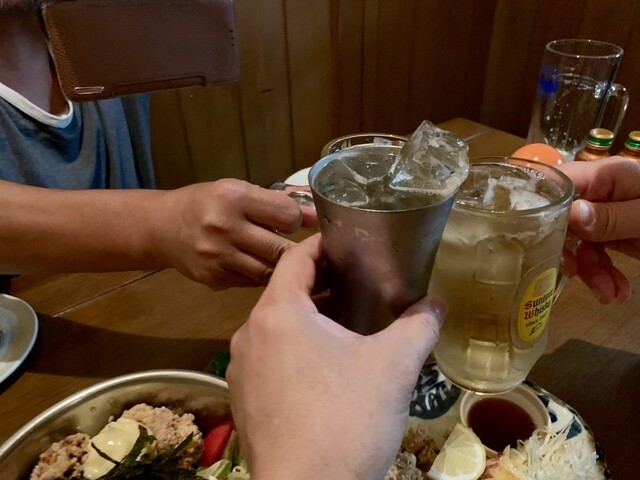 おふたりは角濃いめですが僕はフリージングハイボール(黒ニッカ)を挟みます。スッキリー。