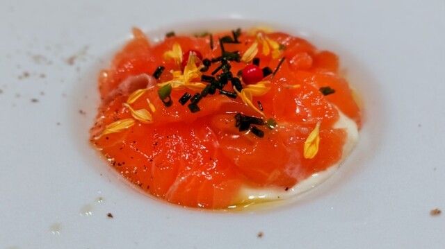 ・真鯛のカルパッチョ風ー梨とカラスミ