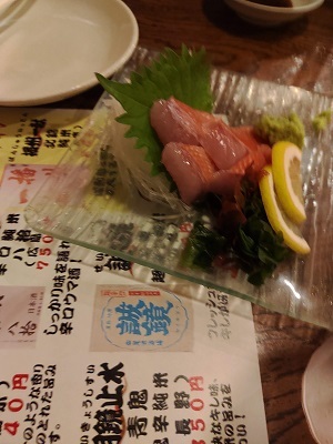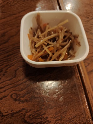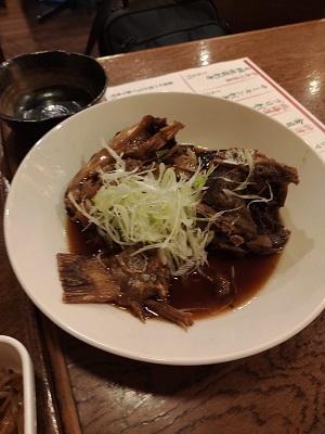 さがみといえばあら煮。とりあえずビールとあら煮を注文しました。ちょっと出てくるまで時間がかかりましたが、あら煮はたっぷり。美味しかったのでもう一つ注文しようとしましたがすでに売り切れでした。残念。お通しはきんぴらごぼう。これに400円は高いかもと思ってしまった。ちょっとうるさいので連れていく相手を選ぶかも