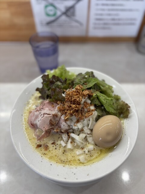 平日12:20着、待ち無し。駐車場は店舗の裏手、線など引かれてませんが広大です。はりけんラーメン南店でやっていた方々でお久しぶりですと声掛けていただいてうれしかったです。初訪問なので一番人気鴨中華そば...