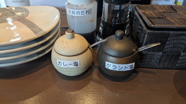 卓上には「カレー塩」「ゲランド塩」なども用意されていて、味変しながら最後まで飽きずに食べられます。天つゆも上品で、全体のバランスが良いです。