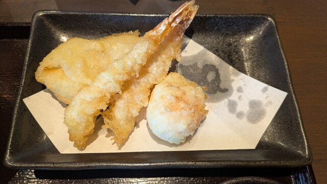 揚げたて熱々で、衣は軽くサクッと、噛むと中はホクホク。油の重さを感じさせず、プロの技をしっかり味わえる一皿でした。えびや野菜も一緒に楽しめて満足感があります。