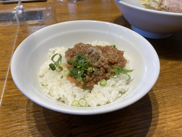 妻は煮干そば、自分はいつもの濃厚煮干そばを注文しました。そぼろご飯と明太マヨご飯はシェアしました...