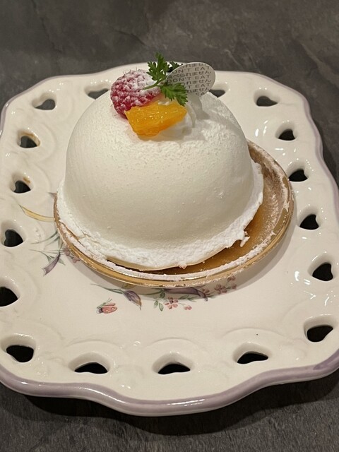 エディブルフラワーものったお洒落なプリンはラム酒の香りもいいですし、さっぱりと食べやすいプリントの組み合わせも印象的でさすがプレジールさんと思いながらおいしくいただきました。