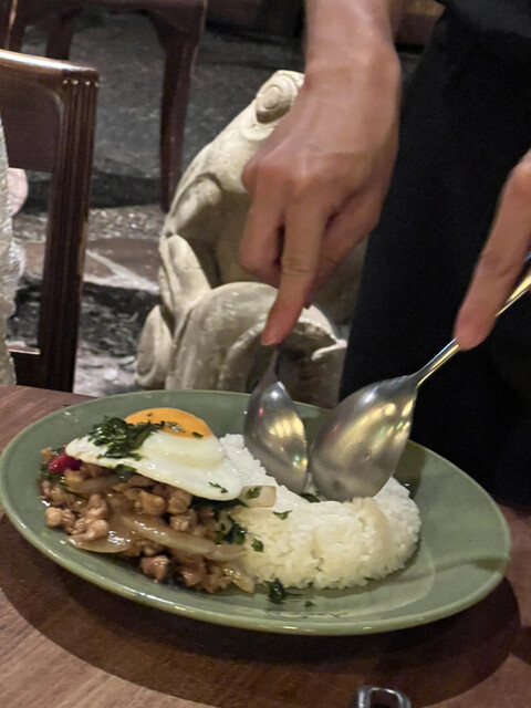 店員さんが仕上げてくれるガパオライス。