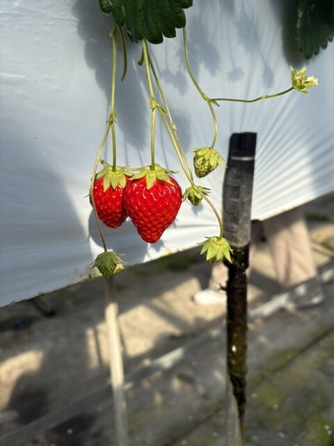 天国ですか…?笑というくらい、紅ほっぺの甘さに感動でした。ヘタまで真っ赤になっている大きな苺を何個もいただきました。お腹いっぱいになって大満足で帰りました。今年の いちご狩りは本当にこちらに来て良かったです。