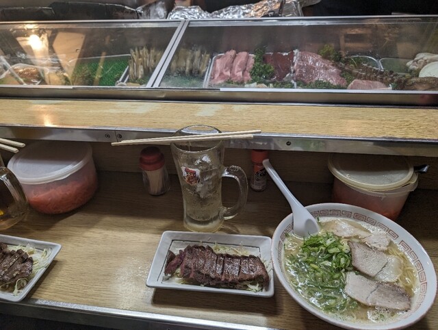 4人なので2人ずつ好きに頼もうとなりましたが、どちらも同じ黒毛和牛タンとラーメン。牛タンを焼いてもらってる間に、おでんのはんぺんやロールキャベツを注文しました。おでんはすぐ出るので腹ぺこにも嬉しい。