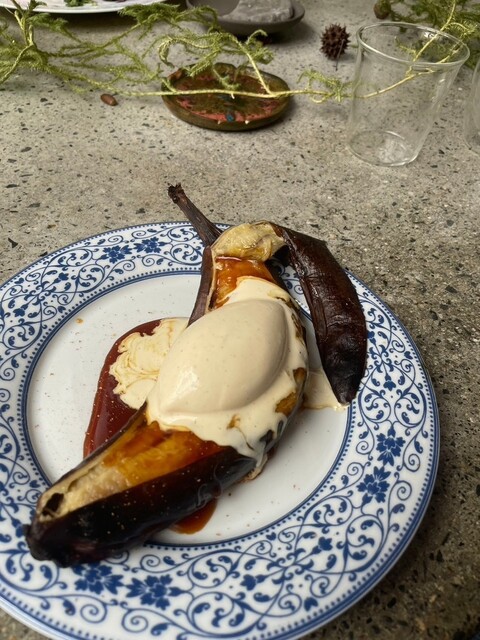 焼きバナナに燻製したバニラアイスが乗ったデザートも絶品でした。