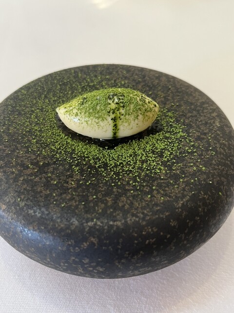 抹茶の粉だったかな。シャーベットが口の中で溶けて、飲み込んだ後にレモングラスの香りが余韻となって広がりつつ、次に繋がる重量バランスを発揮してくれている。