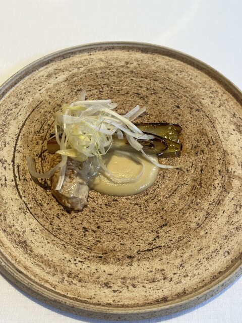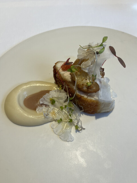 ラタトイユと聞いていたので出てきて驚き、生春巻きスタイルでの提供。見慣れた具材が詰まっているのですが、ズッキーニ?は揚がって登場。溢れんばかりの野菜の甘味、煮込み、揚げ、生地の異なる食感による多層性。旨い。