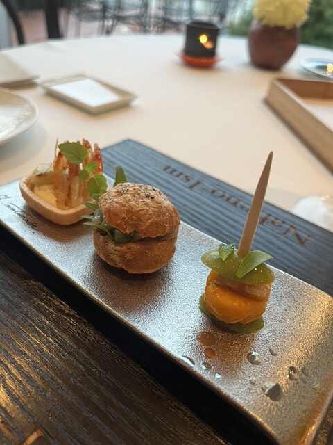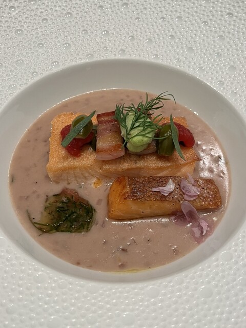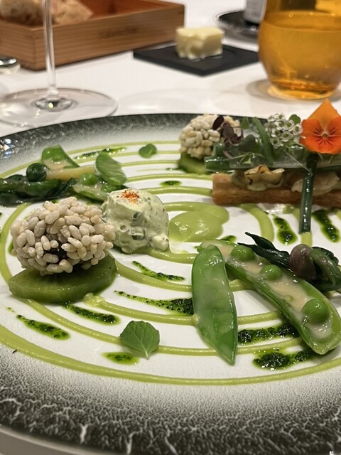 和と季節のエッセンスが「美味しい」という共通ゴールに向かって綺麗にフレンチに融合されているため、その様はゴッホの「花咲くアーモンドの木の枝」またはクロード・モネ「ラ・ジャポネーズ」を彷彿とさせる、美しき調和。