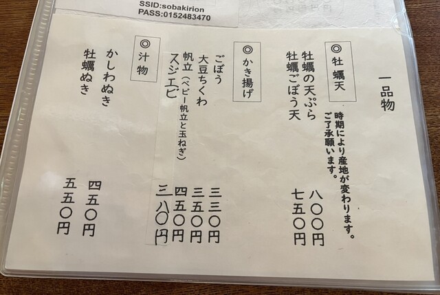 2種類の10割そばが美味しい!牡蠣の天ぷらも絶品!