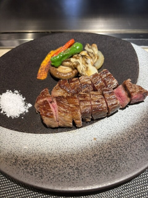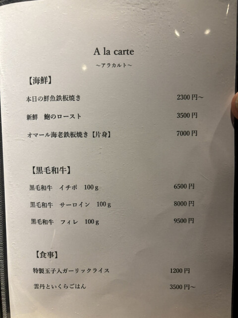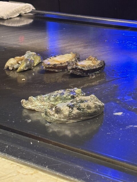 個室もありますが、奥の鉄板焼きのカウンターに案内してもらいました。