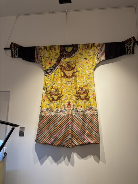 エレベーターを降りたところに黄の衣装、が飾られています。清の皇帝の衣装です。