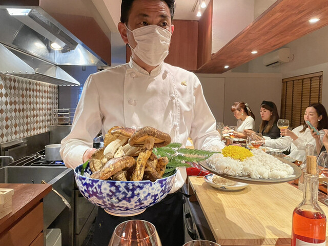 ソムリエのシェフ今井さんがワンオペで季節の食材を使ったコースとワインをペアリングしてくれる!