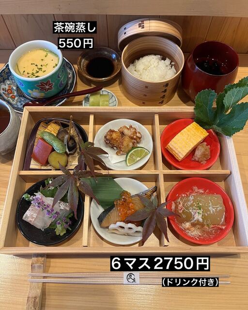 ランチは6マス、9マス、懐石コースの3種類で、今回私は6マスをいただきました✨