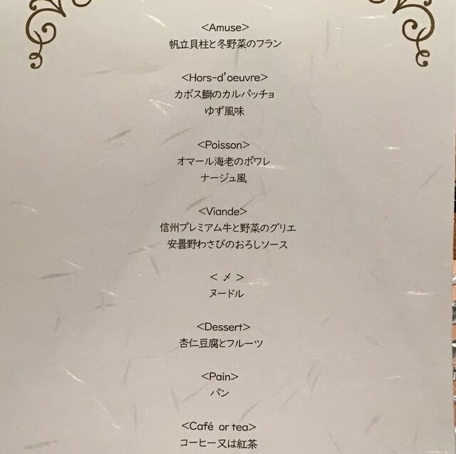 お料理は料理長さんの創作でどのお品をいただいても大変美味でした。