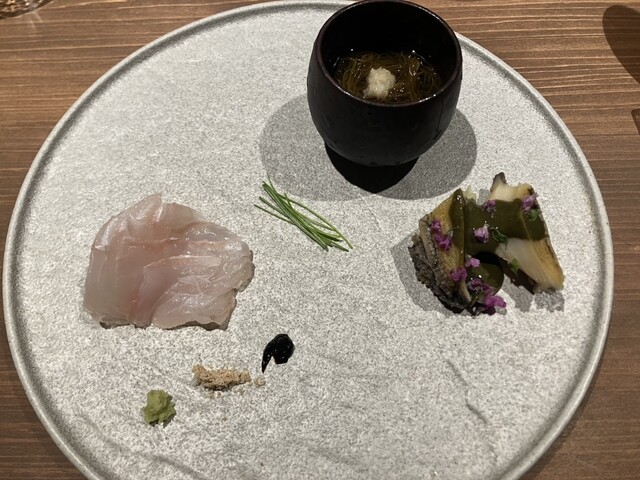 甘鯛の鱗揚げに翡翠ナスは出汁が強く皮目がパリッとしていてうま〜い