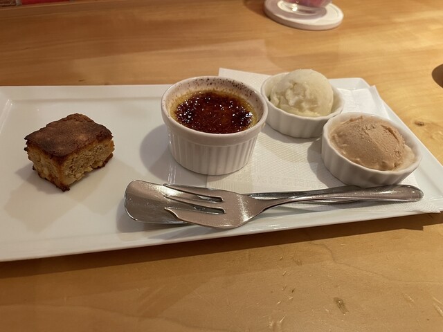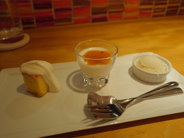 デザート:バナナケーキ、パンナコッタプリン、ピスタチオジェラート(写真忘れ)