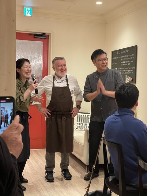 会に先立ち、お三方から開始の挨拶がありました。最近、日本で流行の和イタリアンではなく、日本人向けにカスタマイズされてない、媚びていない、現地パルマの料理を今日は存分に味わって欲しいと熱い挨拶がありました。これはテンションが上がりますね〜!!