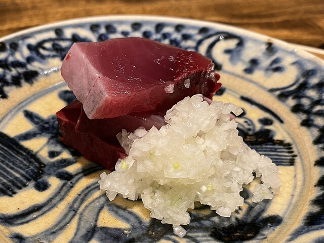さらに鰹の腹を炭火で焼きほんのり塩をつけた品も。旨味がすご〜い!脂がなんとも美味しいです。