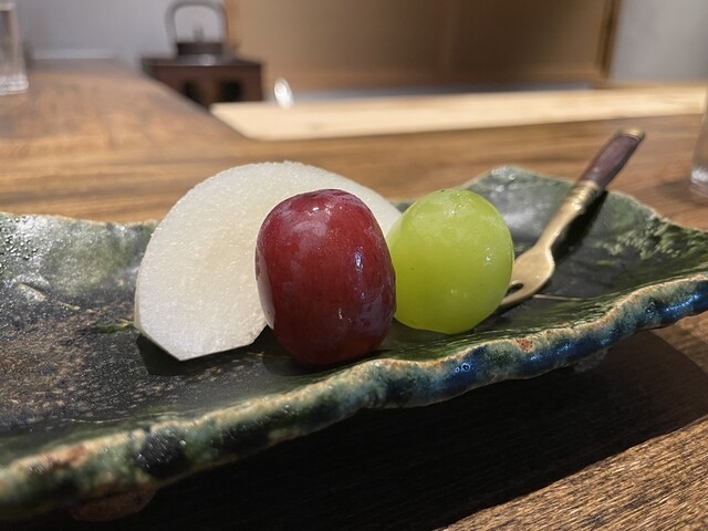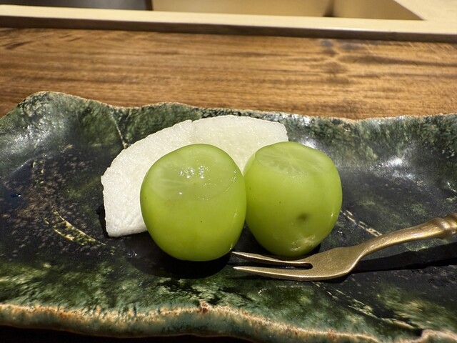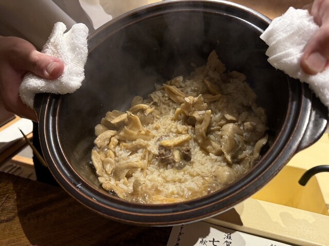 →これは泣ける美味しさでしたね♪蓋を開けると広がる吸い地と雪茸の香り高さ。本当に優しく口の中で広がる味わいで、、、。白甘鯛のふくよかな旨みと重なると、幸せが込み上げてきますね♪