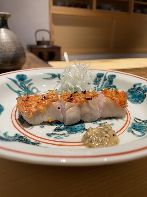⑨金目鯛の炭火焼、実山椒醤油と共に