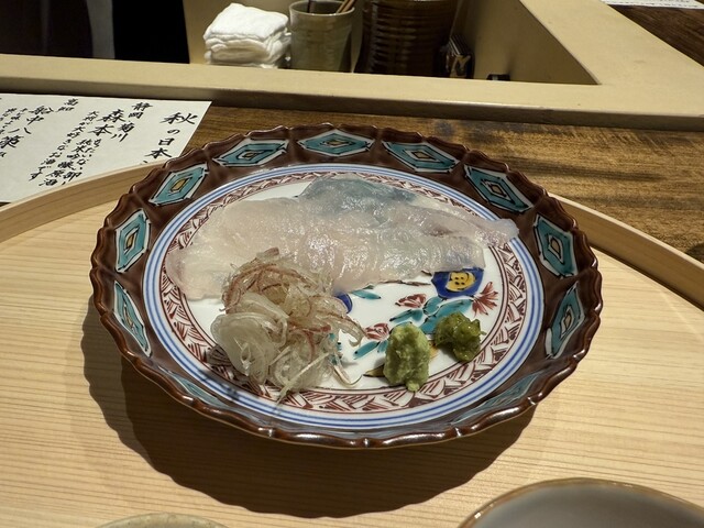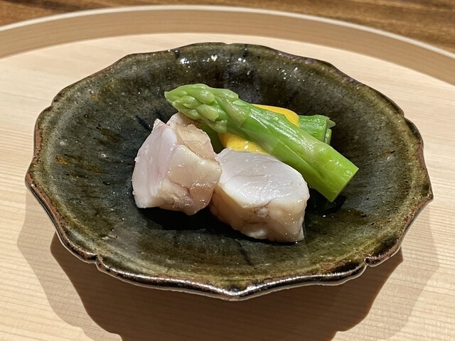→ウスバハギは頂くことは初めて。カワハギの仲間ということで見た感じ淡白な味わいかと思ったら、噛むほどにジワジワ出てくる綺麗な旨みは驚き。そして肝醤油がまた美味しい。塩も良いけど肝醤油はそれだけでもお酒もよく進みそう♪