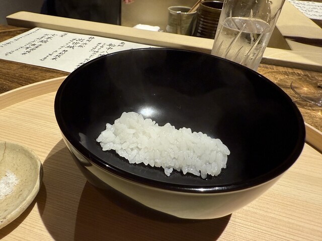 →地物の伊勢海老を杉山さんが手早く捌かれていました。ブリブリな弾力の身と味噌の円やかな旨みがたまりません。味噌の上に乗った紫蘇の実の塩麹漬けが良い仕事♪味噌のまろやかさに紫蘇の香りと良い塩梅の塩加減をプラス。
