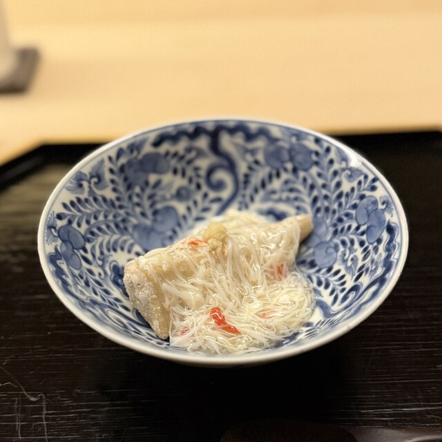 → 蓋を開けると何とも馨しい香り。すでにノックアウト。しっかりと昆布と節の旨みが溢れています。大将が言うには煮物椀の一品なので味もしっかり出しているとのこと。優しくて力強い味。素直に美味しいと思える一品でした。