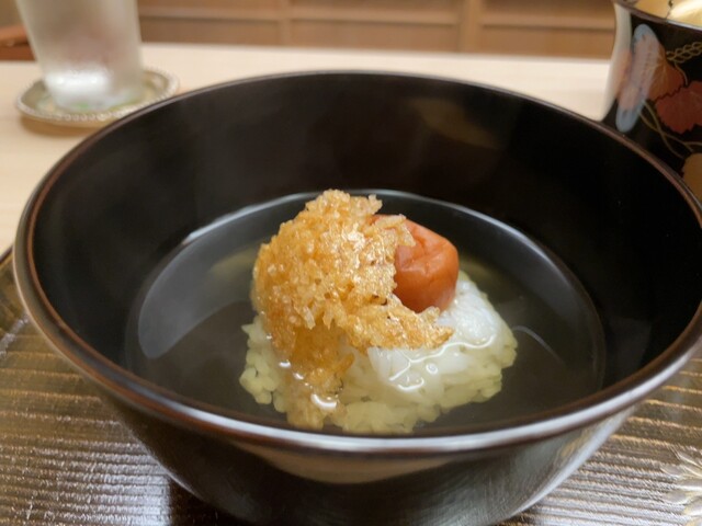 鮑は薄く切ってあるので口の中で咀嚼するとすぐにフワ〜っと香りが立ちますね。そしてクニクニと噛むほどに旨みが溢れてきますから堪らなく美味しいですね。そして玉子豆腐は意外と固め。しっかりと玉子を感じました。そしてお出汁が本当に美味しい。具材の土台としてしっかりと支えています。アクセントのかぼすの皮の香りとほのかな柑橘感が良い仕事をしてくれています。全体的に柔らかで円やかな味わい。このひと腕だけで来た価値があるってものですよ〜( *´艸`)