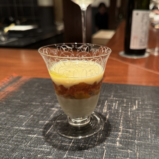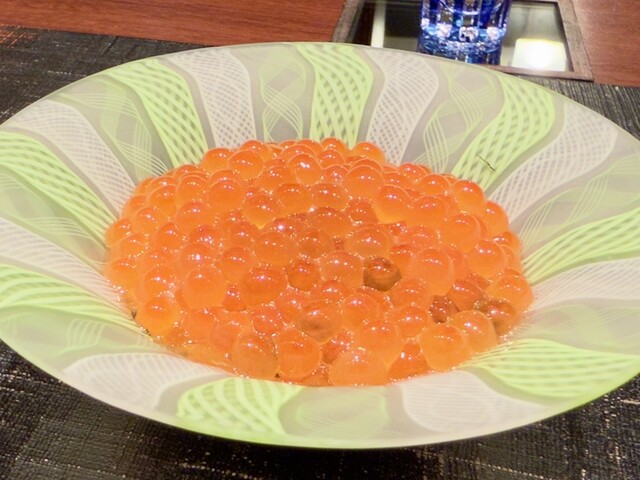 実はいくらの下には雲丹も隠れており、なんとも贅沢な一品。下には滑らかなじゃがいものムースとサイコロ長芋が。筋子はフレッシュそのものでピュアな旨みが全開。口の中で全てが混ざりあうと、、、これは幸せ全開な一品ですね(*´艸`)