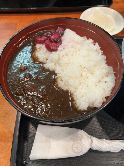鹿児島県民が熱愛のご当地チェーン店で、「黒豚しゃぶそば(太麺)」と「そば屋のカレー」を堪能!