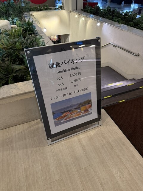 朝食付きプランにしていたので、朝食会場に行きます。朝食はバイキングですが、大人2,500円となっていたので宿泊しなくても食べれるかもしれません。