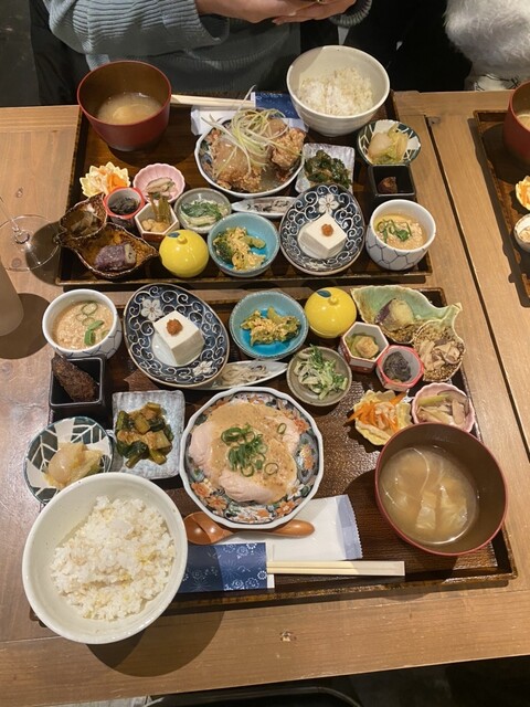 自社農園で無農薬野菜を栽培されていて、収穫したお野菜を調理する、心と身体にとーても優しい✨おばんざいランチプレート!お惣菜15品とメイン1品。ごはんとお味噌汁はおかわり自由♡