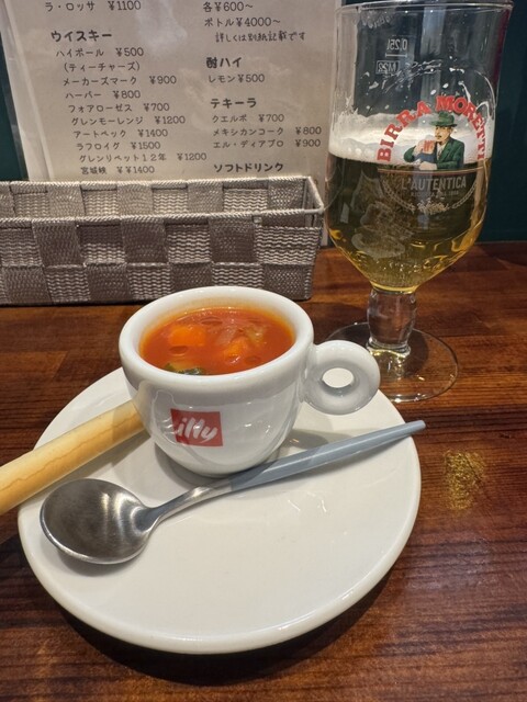 おつき出しのミネストローネは、ほっこり温かく、お料理を待つ楽しみになります