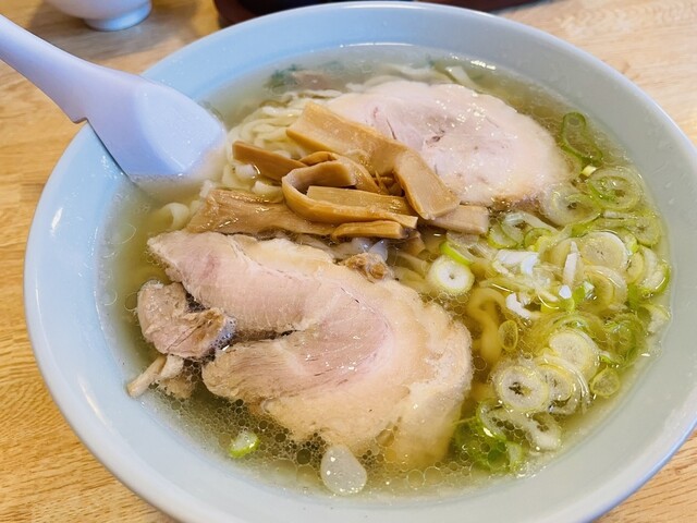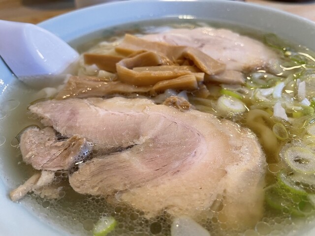 ラーメン、塩ラーメンの様にかなり透き通ったスープ。